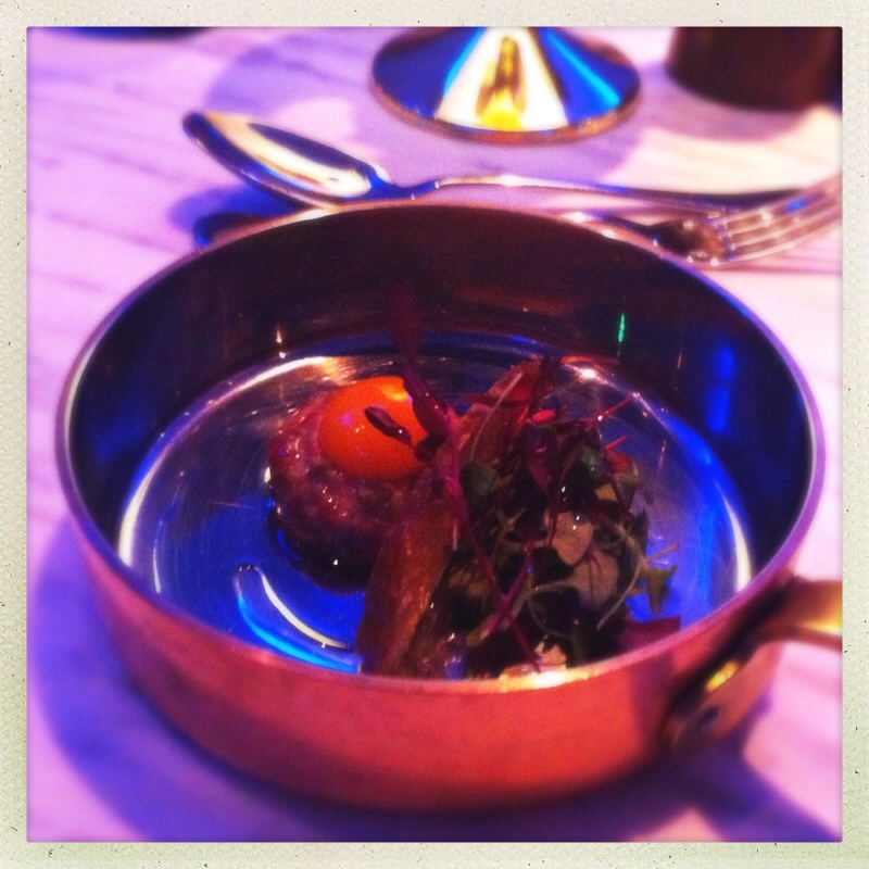 The dining commenced with Steak Tartare with a quails egg yolk, crouton and olive oil. Served with a perfect serve gin – I had Tanquery with Fever Tree tonic and grapefruit.