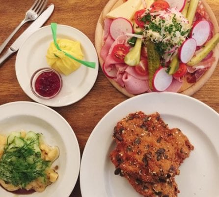 Suitably filled up with beer it was time for dinner at Wohlfahrt’s Wirtshaus. This Austrian restaurant was perfect for a casual and relaxed atmosphere with tasty food and real Berliners. I had the Brett’l Jause which was a mix of cheese, meat, vegetables with fresh horseradish and spreadable smoked bacon fat whilst Mr Foodie had chicken with pumpkin seeds and potato & cucumber salad. Both were just what we needed after a day walking about.