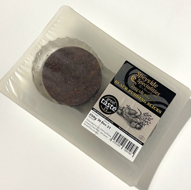 We used Speyside Specialities black pudding as we were given a sample to try. Speyside Specialities supplies its traditional Scottish puddings and skirlie to supermarkets, including Morrisons, Asda, Sainsbury’s and Tesco. We like a black pudding and always tend to buy Charles McLeod Stornaway black pudding, this was so like it – bloody and meaty, not full of filler.
