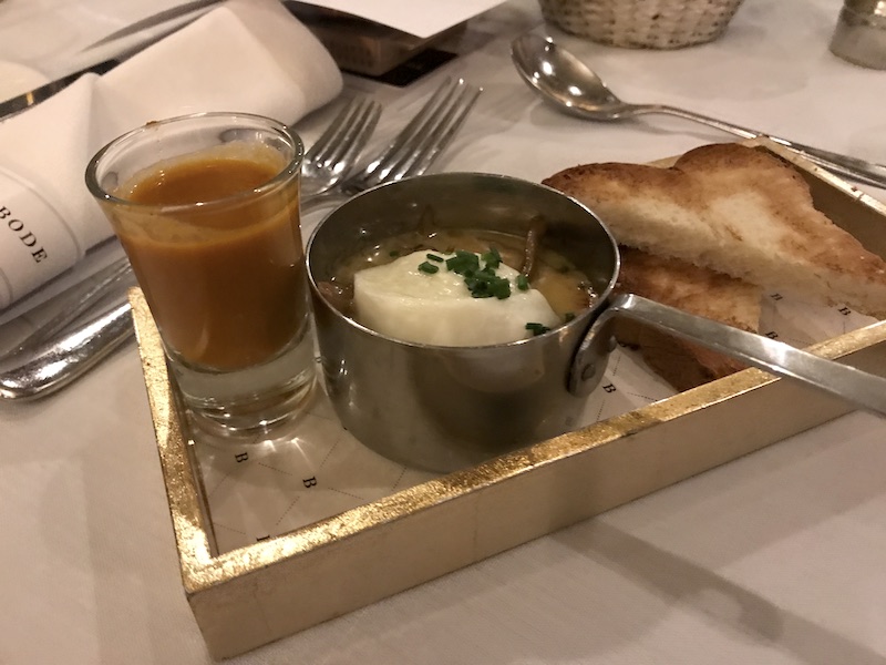 Soon seated we started with A shot glass of Lobster Bisque (of course there was bourbon in there) accompanied by Mushrooms and Burrata. Nice and creamy with a hint of chilli heat. Toasted bread was on hand to mop up the juices. A Nice starter with lots of interesting bits.