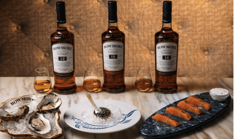 Sampling some of the finest whiskies, guests will be walked through the subtle sweetness of the 12-year-old paired with the briny freshness of oysters before moving onto the rich, buttery notes of Prunier caviar that harmonises with the smooth complexity of Bowmore 15-year-old. A perfect pairing of delicate Scottish salmon and Bowmore 18-year-old follows, where the whisky’s delicate smoke enhances the salmon’s natural flavours. The evening will culminate with the rare elegance of the Bowmore 25-year-old.
