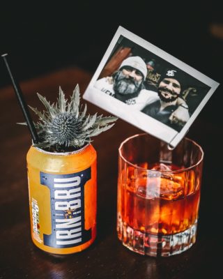 The OG Ginger Spritz’ – a nod to Tom’s undying love for Scotland’s most-loved drink with a kicker of Arbikie’s Kirsty’s Gin, sparkling Sauvignon wine, topped with IRN-BRU and served in a complete ginger tinnie with a purple-flowered thistle rose garnish.