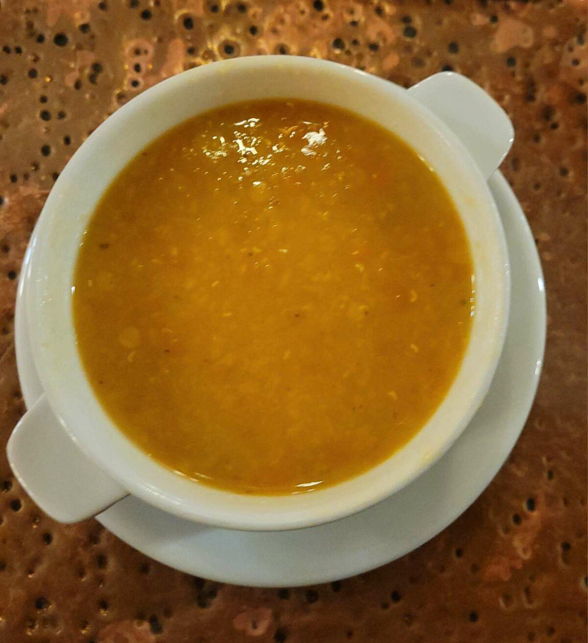 Soup or fruit juice to start, with the day’s weather, soup. Actually, regardless of weather it’s always has to be soup.