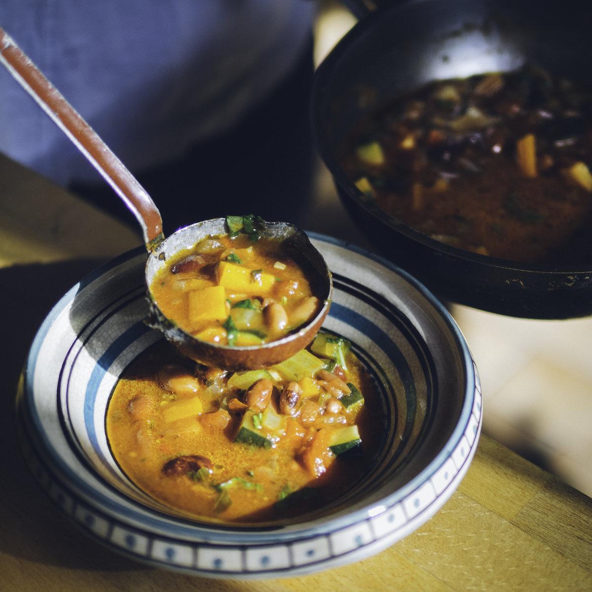 Bring up to a light boil for 30 to 40 minutes until the beans are absolutely tender. Season with salt and freshly ground black pepper and some more chopped fresh herbs if you want. I sometimes stir in a spoon of tomato purée at the end to add depth and richness to the soup.