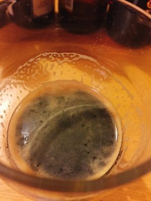 Appearance: Very dark brown, couldn’t see through when held to light. Pleasant appearance.