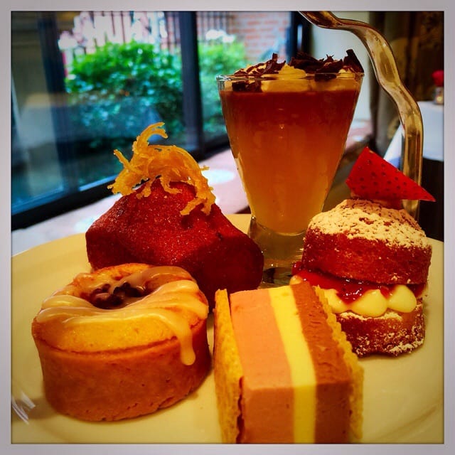 Decadent chocolate orange trifle, buttery bakewell tart as well as a tart and sweet lemon sponge. Just when you think it’s all over… there is more! Plain and fruit scones are served warm with strawberry jam and Devonshire clotted cream.