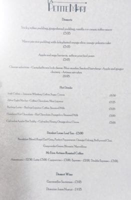 We didn’t have any post-dinner drinks but if you do they have dessert wine (Garonnelles Sauternes for £3.95 a glass), Eteaket tea (£3) and Mr Eion roasted coffee (£2.50-3).