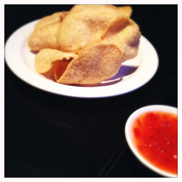 Some Thai prawn crackers and zingy chilli sauce to dip whilst waiting.