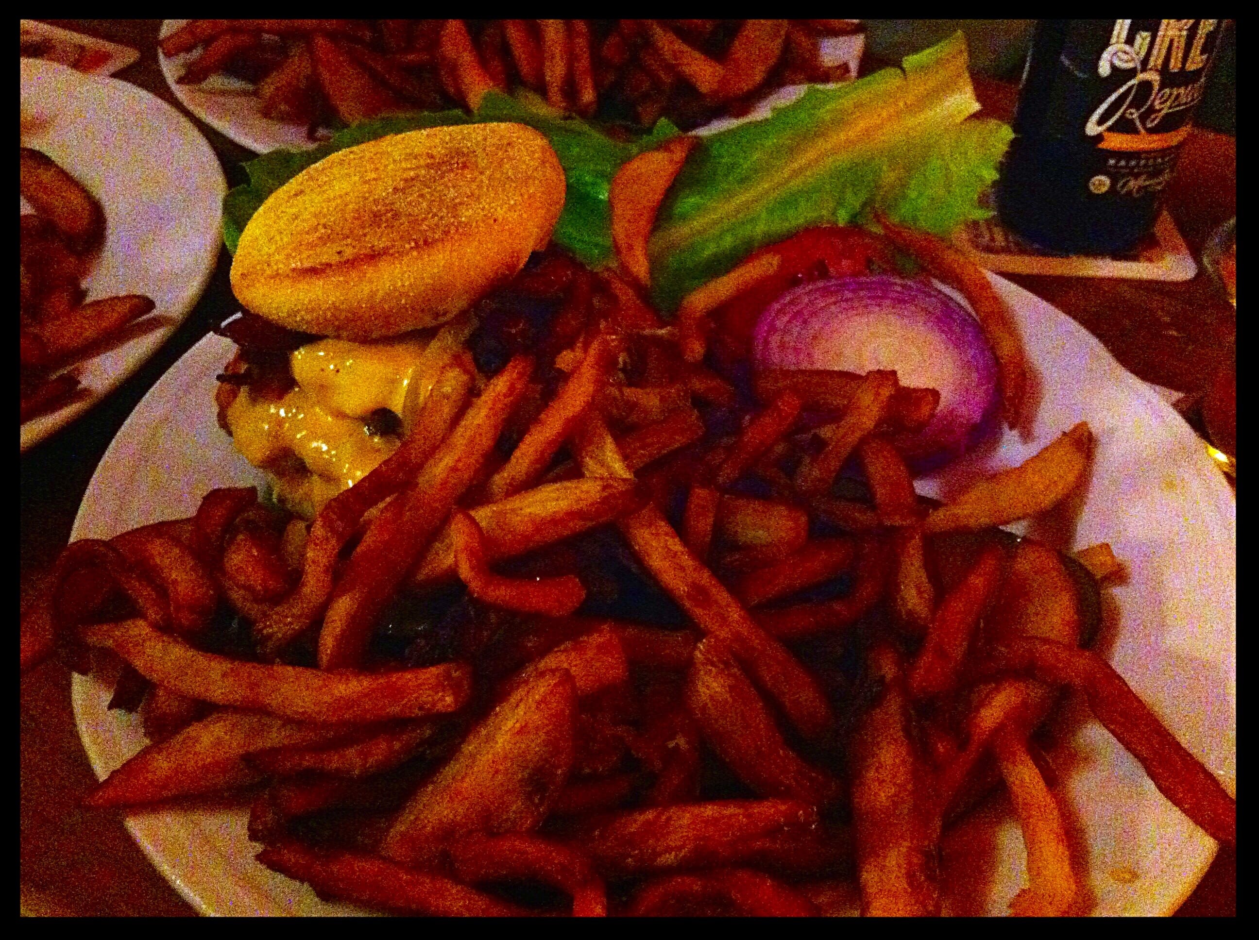 This is the Bird’s standard house burger, wow. The full description on the menu of two beef patties topped with American cheese, bacon, fried onions, ketchup, mustard, pickles and; enough grease to kill a donkey. It was messy, very messy.