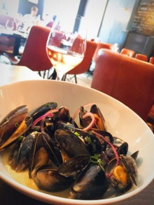 In the mussels offer, you can choose from a small glass of red, rose or white. All 3 are organic. I chose the rosé, feeling summery and Mr Foodie chose the white – a nice light mineral wine which isn’t as acidic or tart as a typical Sauvignon Blanc.