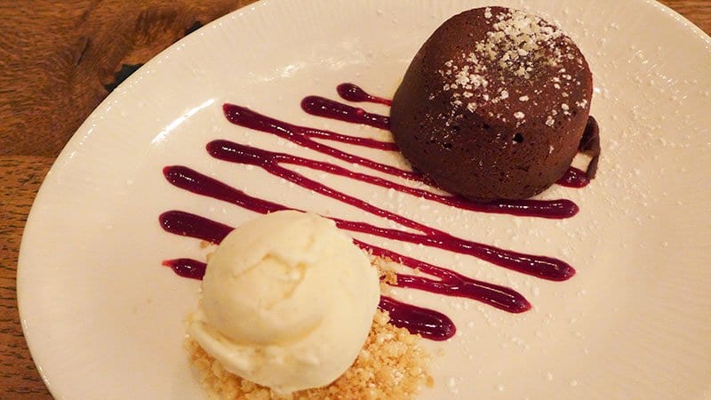 We had the chocolate fondant with vanilla ice cream (£5.50), and this was very pleasant. Served warm with a gooey melted chocolate centre as all good chocolate fondants should be!