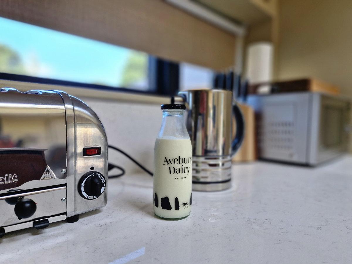 Each barn includes a fully-equipped kitchen, which includes a dishwasher, Nespresso machine, toaster, microwave, small fridge/freezer, cooker, kettle and all the pots, pans and accessories needed to cook a meal here. Essential such as tea, coffee and a bottle of local milk from Avebury Dairy was supplied, which was deliciously creamy – make sure to visit the Milkbot machine in the village for more milk (only 60p per 500ml) and to make delicious milkshakes. There isn’t a washing machine or tumble dryer within the apartments themselves but you can find these facilities in the communal barn beside the car park area.