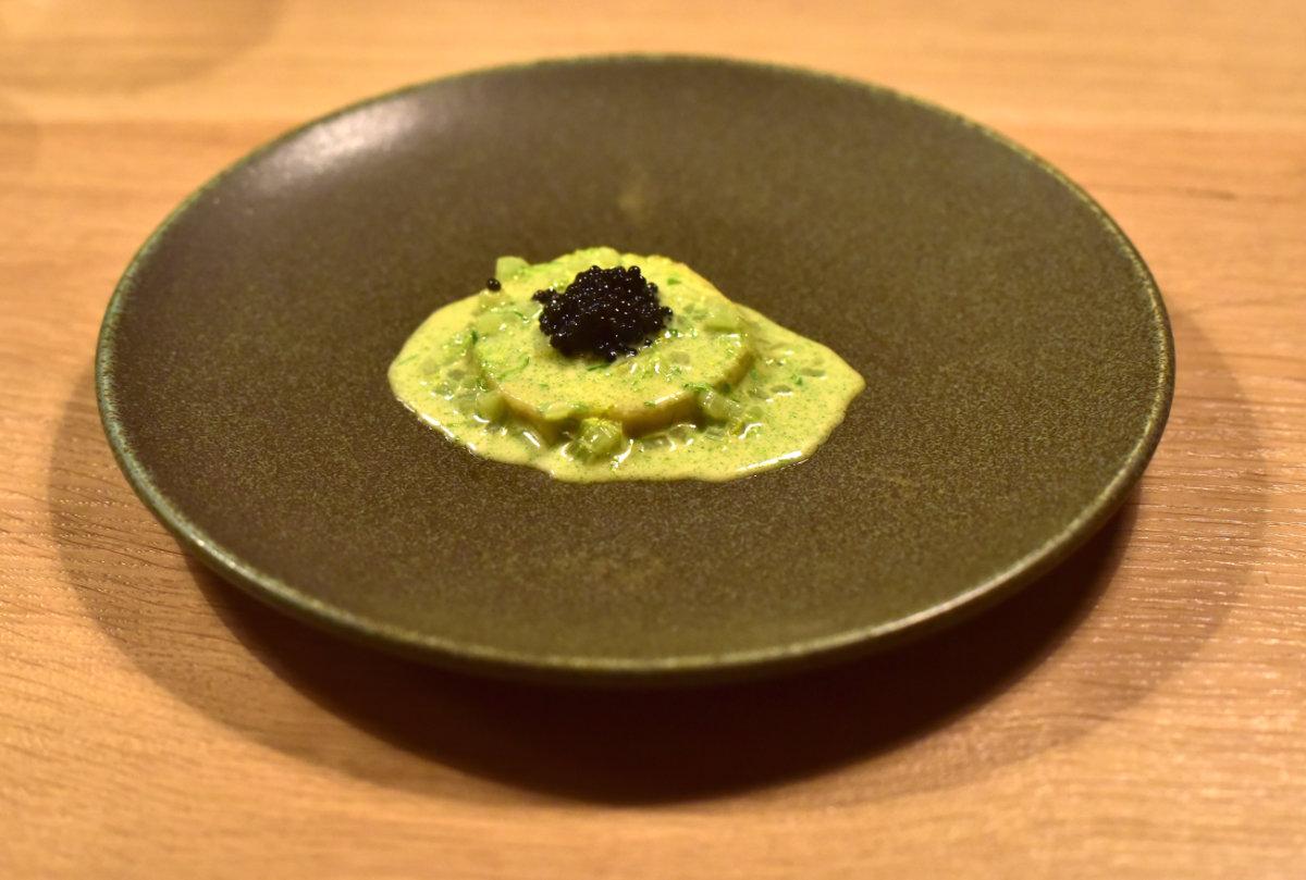 Returning to Japan somewhat, we had a disc of celeriac in a salted koji (fermented) marinade that had been reduced with butter. This was finished with fresh celery pieces, dashi and a generous dollop of caviar.