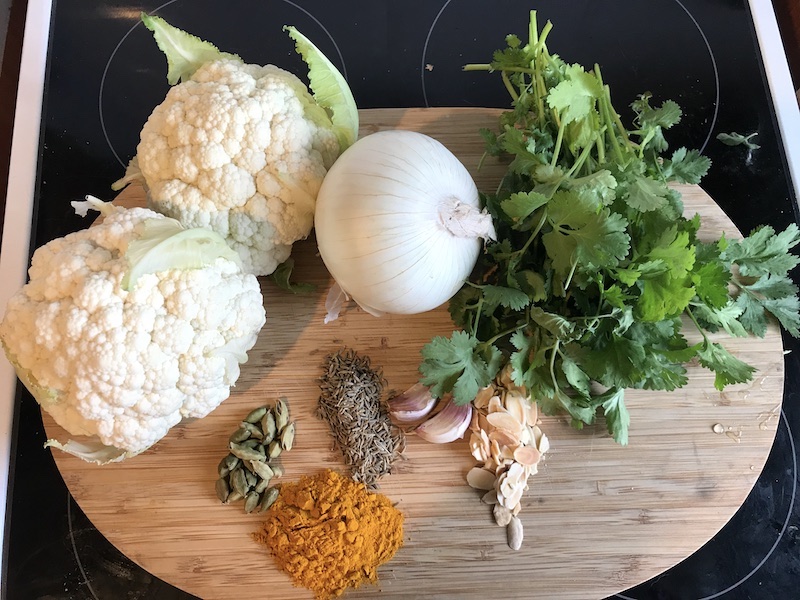 - cauliflower 1 large broken into florets, leaves roughly torn