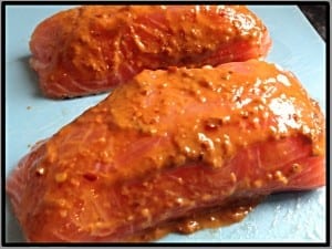 - Spoon sauce onto salmon fillets. Place aside to marinade.