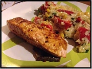 - Place rice beside salmon on plate
