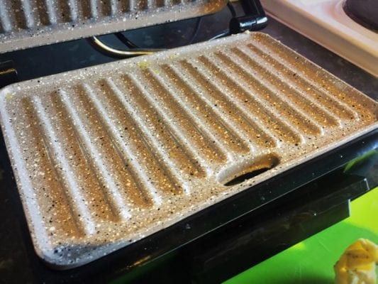 I was surprised at how little mess was left.  I was expecting carnage! This is the panini grill after removing the omelette.