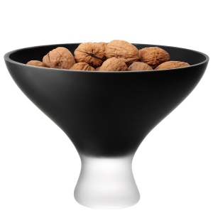 “Satin is a collection of matte black accessories with fluid curves and contemporary forms. Inspired by the contrasting faces of satin, traditional glassmaking techniques are used to layer black glass inside walls of colourless glass. Each piece is smooth to the touch and has a subtle sheen when it catches the light. Each vase and comport is gift boxed in photographic packaging. The collection’s contemporary designs create impact when displayed alone as decorative objects and co-ordinate perfectly with monochrome colour schemes.”