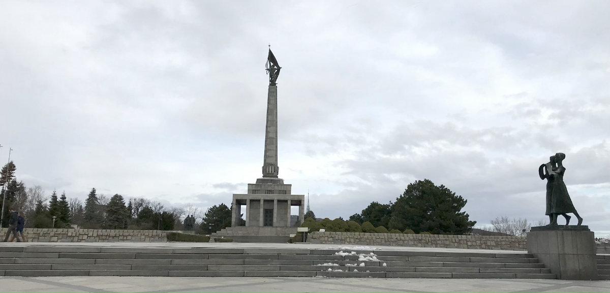 The central obelisk is more than 39 metres high, and is topped by an 11-metre tall statue of a victorious Soviet soldier carrying a flag. Around the base are inscriptions recording the Slovak cities liberated by the Red Army during its advance in 1944 and 1945.