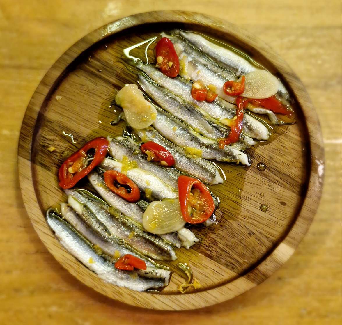 Marinated Cantabrian Anchovies with garlic, chilli and lemon zest next. Simple, yet delicious (don’t be afraid if you’re not a spice fan as the chilli wasn’t hot).