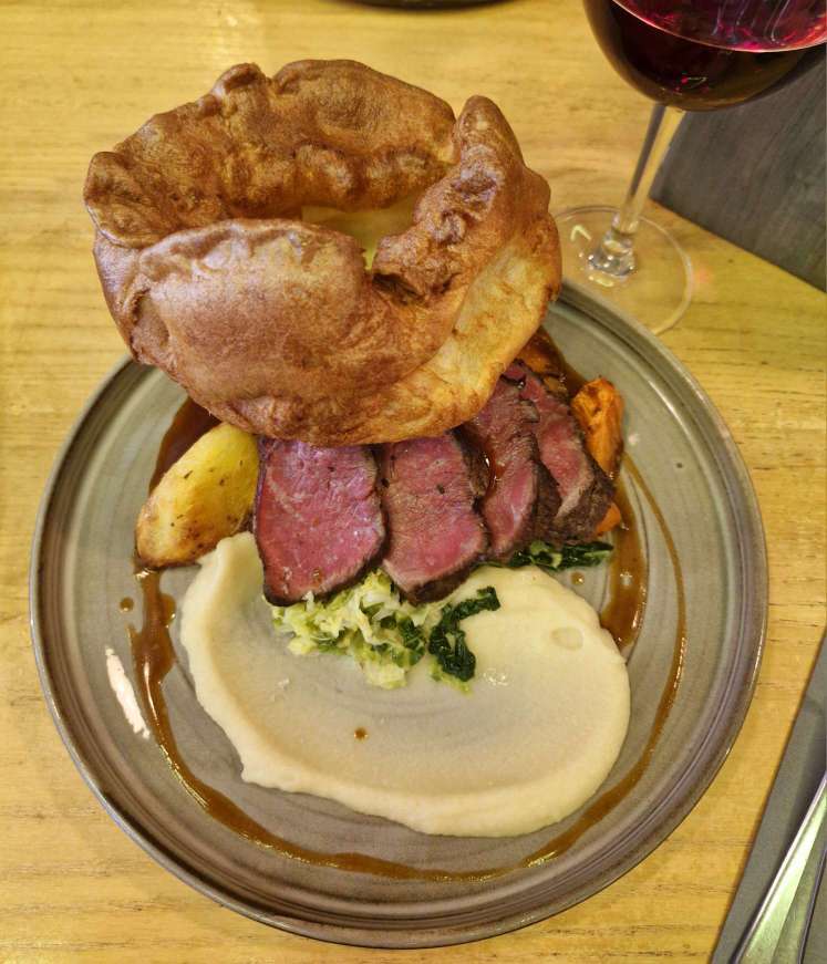 Onto the main event, on Sundays there is a choice of salt marsh roast lamb; 28 day Scottish beef striploin; Dingly Dell Farm Porchetta; Norfolk black corn fed roast chicken; or wild mushroom and beetroot wellington.