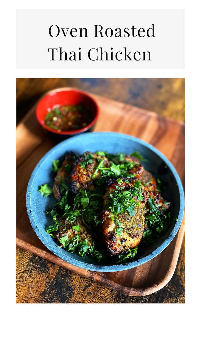 Juicy chicken thighs coated in Thai spices, bliss. An easy-to-cook meal that you’ll wonder why you haven’t made it before. This oven-roasted Thai chicken recipe is tastier if you let the marinade work its magic overnight.
