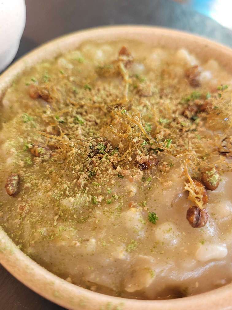 Barley – fermented risotto, malt, wheat grass & toasted yeast. Crunchy, earthy and malty. This was a fermented barley risotto, and reminded us of natto from Japan, or a Japanese-inspired Scotch broth with texture.