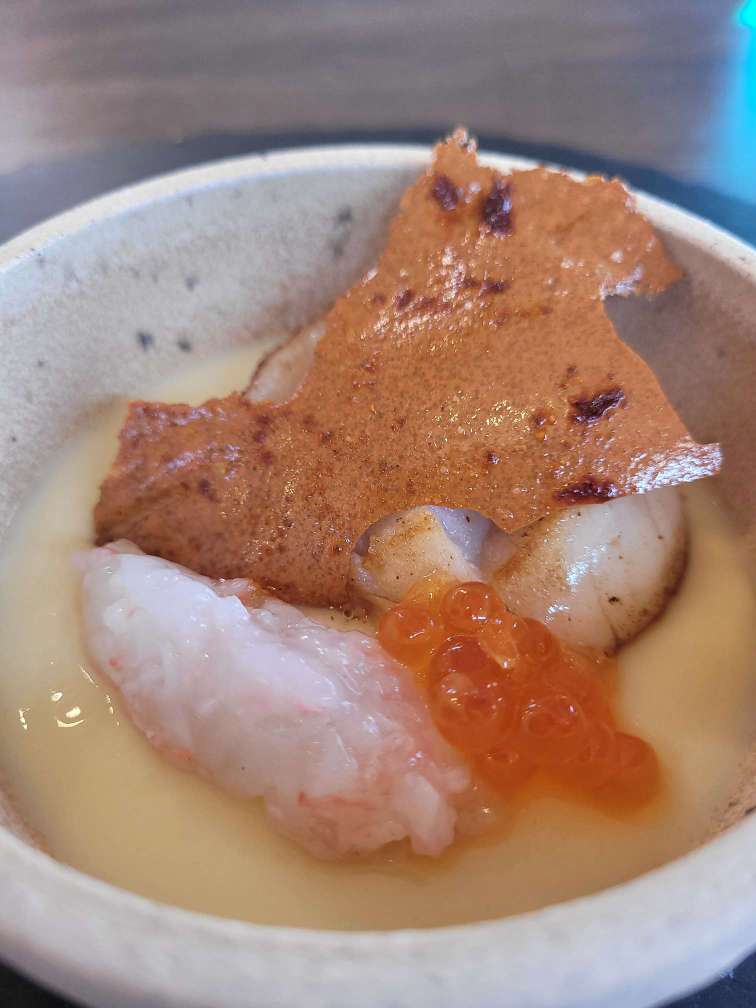 The next stage of the process of whisky making at Talisker. For this course, the delicate flavours of the scallop, langoustine and the Chawanmushi work together with the keta to produce a smooth essence of the sea which surrounds Skye. Chawanmushi is a Japanese savoury custard. It is similar to an egg custard, so a bit like a quiche.