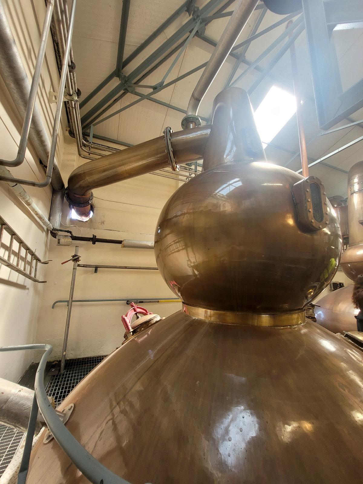 The pot stills have large reflux bowls, so there is a lot of copper contact during distillation. More copper contact leads to a milder spirit.