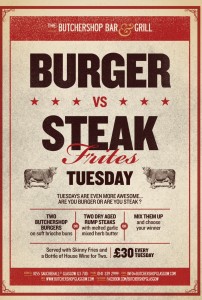The Butchershop Bar & Grill have their burger v steak frites nights back..