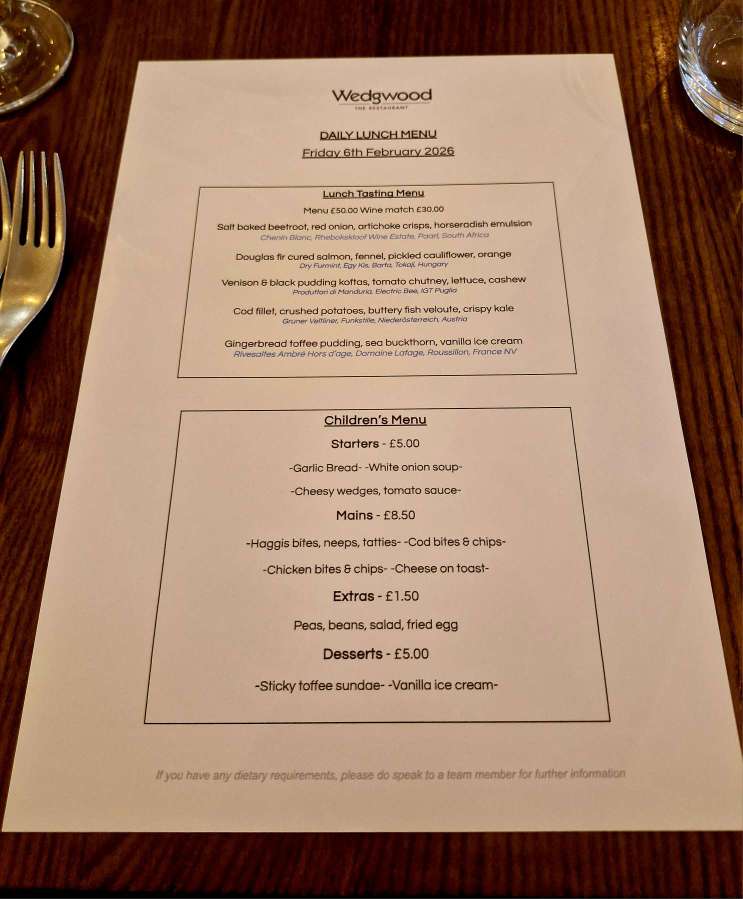 We had a fabulous time at Wedgwood. The food showcases Scottish produce perfectly with accompaniments that enhance rather than overpower the ingredients. Fine-dining lunch menus are often stripped back with limited choices but there was a good selection here with some unexpected flavour combinations to pique our interest. In a city packed with dining options, Wedgwood’s set lunch menu stands out for value, with high-quality Scottish ingredients and relaxed ambience. The waiting staff were great, and the toilets were clean and in perfect working order.